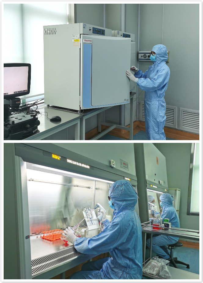 河北燕達醫學研究院與中關村三有利再生醫學研究中心項目人員接到通知后,馬上啟動項目程序。待患者簽署知情同意書后,項目負責人簽署細胞制備任務書,自患者采集的濃縮白細胞被送至河北燕達醫學研究院制備轉化部GMP 實驗室。實驗室登記交接、分離外周血單個核細胞、負分選T細胞、T細胞激活,一系列操作實驗室人員均按SOP 認真有序完成。
